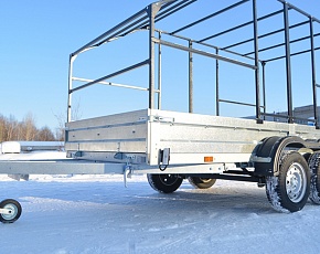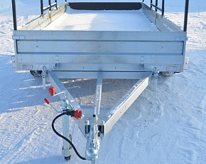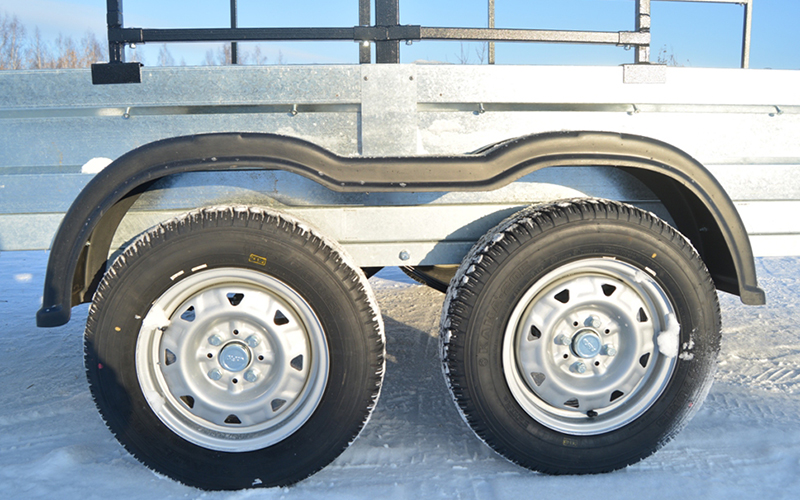 Двухосные прицепы гораздо устойчивее одноосных, благодаря наличию еще одной пары колес. Для удобства погрузки и разгрузки предусмотрен самосвальный механизм, а задний борт усилен ламинированной фанерой. Все это делает новые прицепы особенно привлекательными для перевозки снегоходов, квадроциклов и коммерческих грузов.
