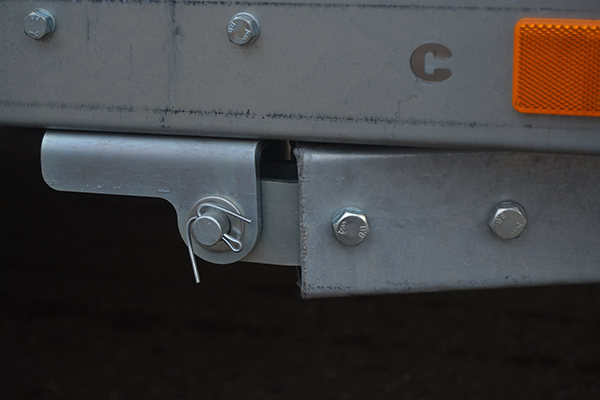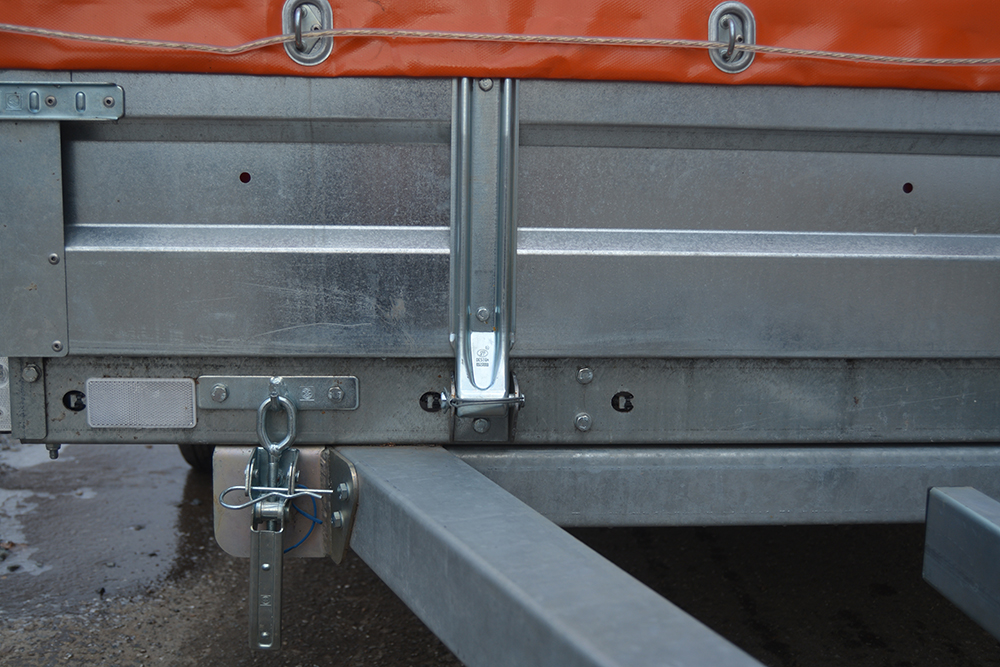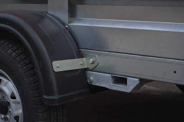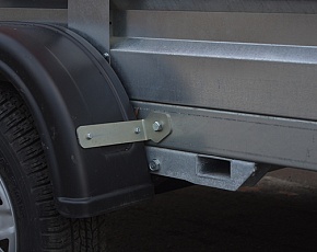 Кронштейны для крепления откидного борта на заднем бампере усилены для возможности установки откидного трапа. На заднем бампере прицепа установлены фонари со встроенным светоотражающим треугольником фирмы FRISTOM.