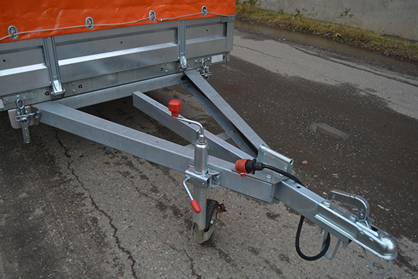 Сварная конструкция подрамника обеспечивает жесткость кузова прицепа.