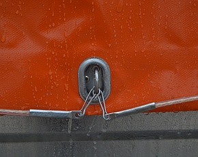 Крепеж тента осуществляется к бортам на скобы («ЕВРО тент»).