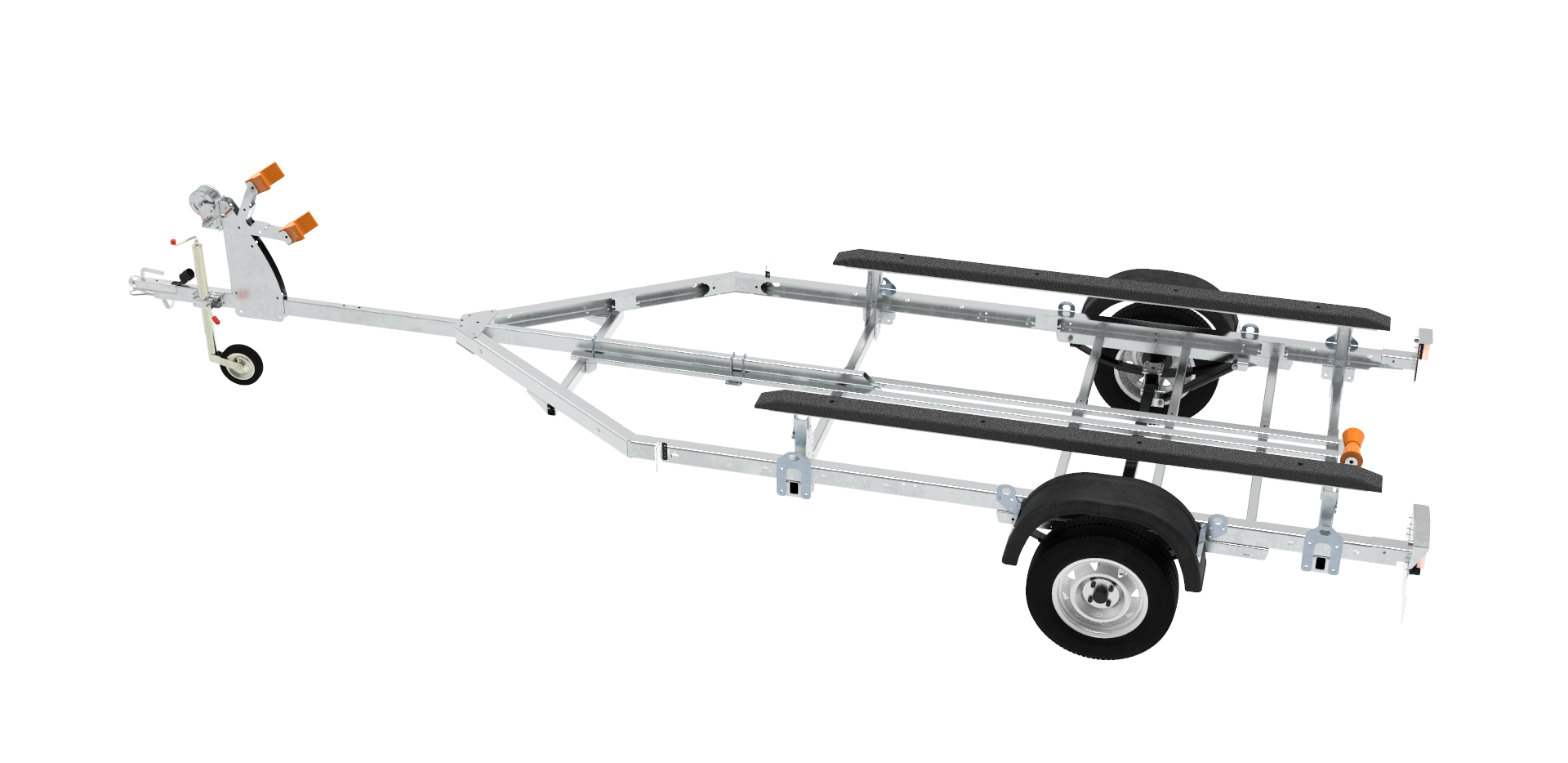 • Тип подвески: рессорная с гидравлическими телескопическими амортизаторами. Изменяемое положение подвески (шасси) прицепа позволяет правильно распределить центр тяжести судна.