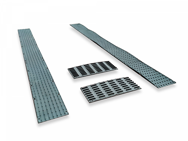 При установке одного комплекта получается две борозды максимальными размерами 252×21 см (с учетом технологического зазора между накладками). А также зону комфортного сцепления траков снегохода с полом прицепа.
