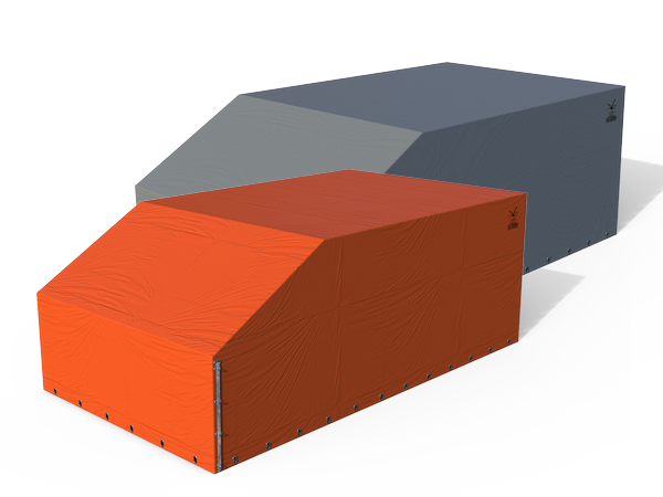 Тент выполнен из армированного материала с поливинилхлоридным покрытием, представляет собой текстильную основу с нанесенным на нее двухсторонним ПВХ-покрытием. Изделия из данной ткани могут быть изготовлены как методом тепловой сварки, так и методом сшивания. Тент обеспечивает изделиям из него герметичность и сохраняет свои свойства при температуре до -25°С.