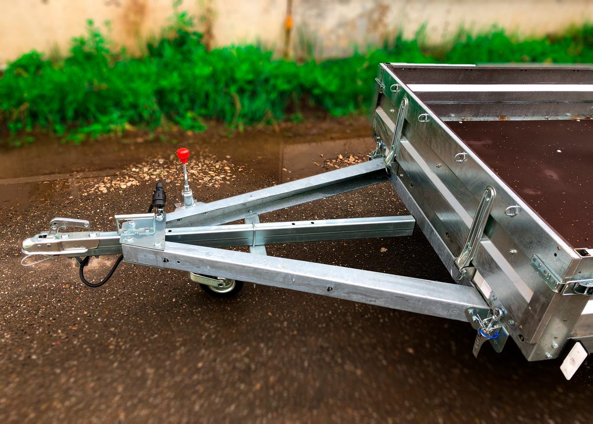 А-образное дышло оборудовано удлинителем дышла 600мм, замковым устройством со страховочным тросиком и держателем штекера. Замковое устройство с индикатором износа, предназначено для шара ТСУ d=50 мм.