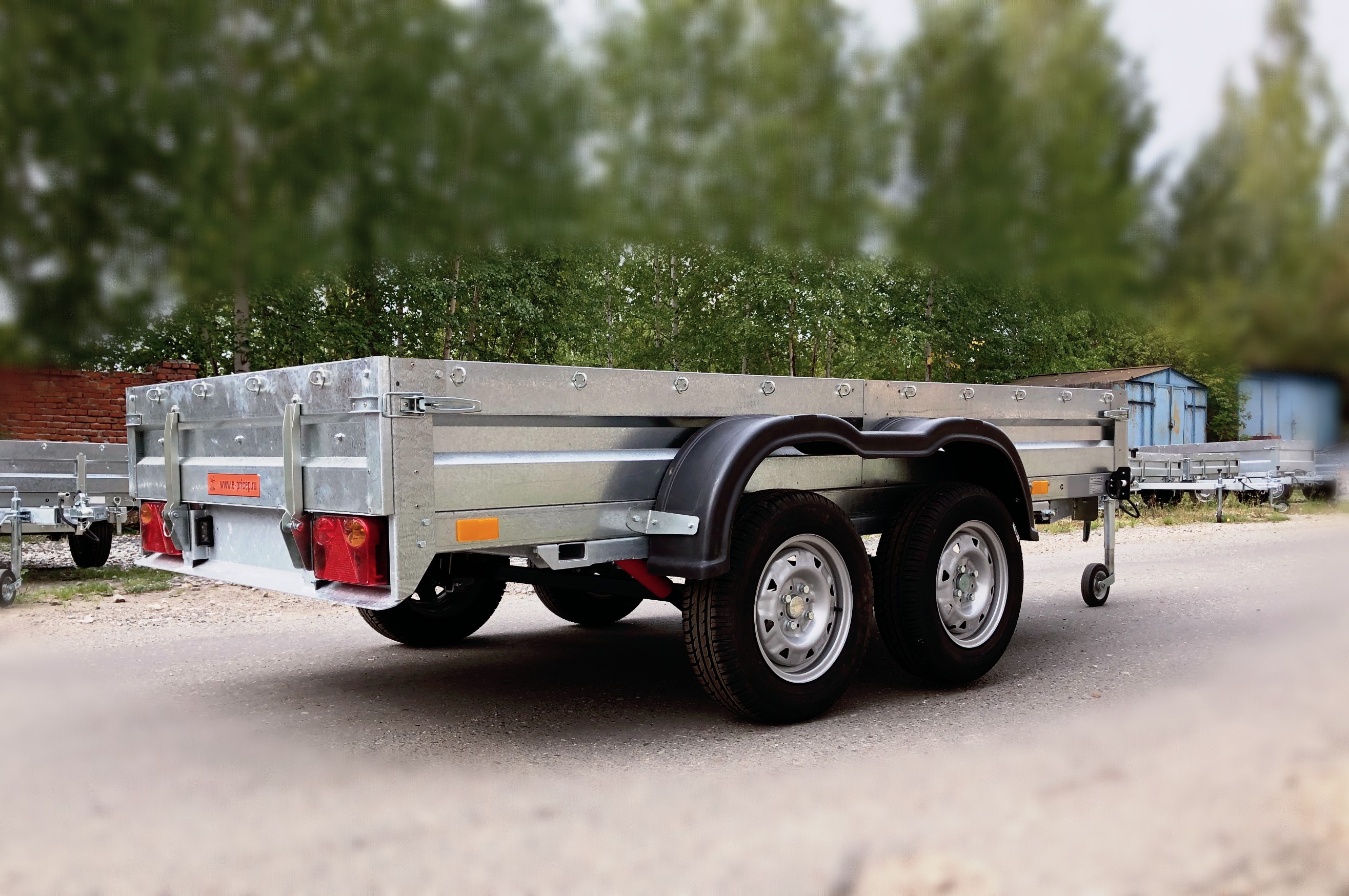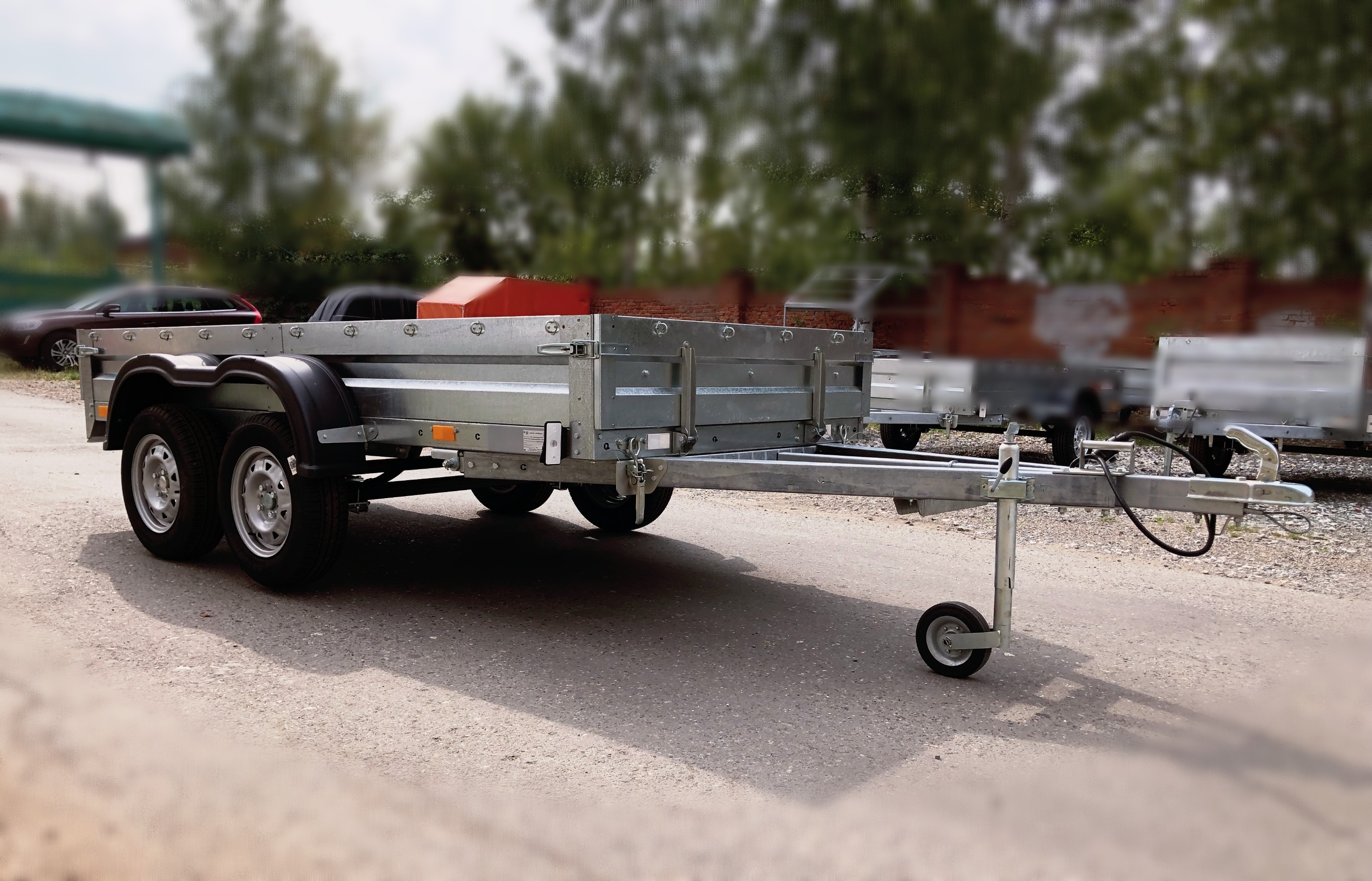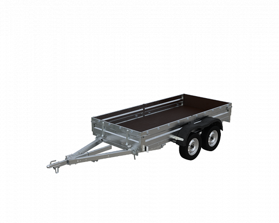 Универсальный двухосный прицеп, подходящий как для перевозки снегоходов, мототехники, так и  для транспортировки стройматериалов, мебели, грузов с высоким центром тяжести по асфальтированным дорогам. Благодаря двум осям прицеп более устойчив.